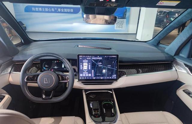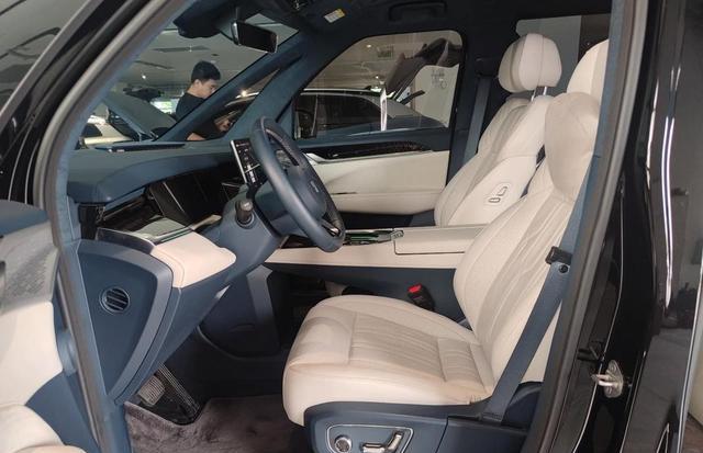 内饰给人感觉很新鲜,中控位置装了两块十六英寸的大屏幕,显示清楚反应也快,中间还配了一个四十七英寸的AR-HUD,几乎把前挡风玻璃都占满了,副驾那边有二十九个水晶旋钮,底下是实木的面板,整体显得很有仪式感,不过按键不多,换挡用的是电子怀挡,样子很简洁,车里是三排六座设计,第二排配了一块十七英寸的OLED屏,可以前后滑动八百八十毫米,乘客自己调整角度看电影,这种安排在BBA同级别的车型里从来没出现过。