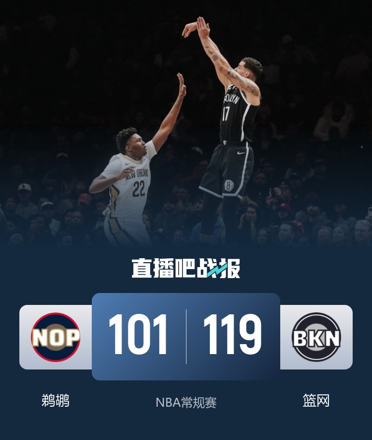 直播吧12月7日讯 NBA常规赛,篮网主场迎战鹈鹕。篮网目前5胜17负,鹈鹕则是5连败后3胜20负。